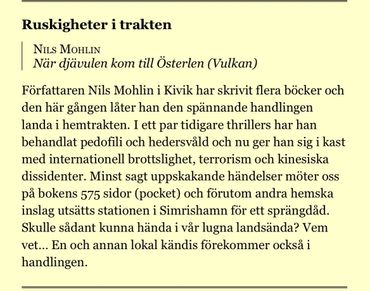 ”Sitter i min fåtölj och njuter av min andra Nils Mohlin deckare.”