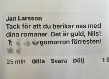 "Tack för att du berikar oss med dina romaner. Det är guld Nils!"